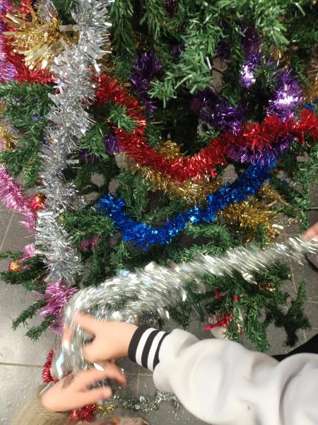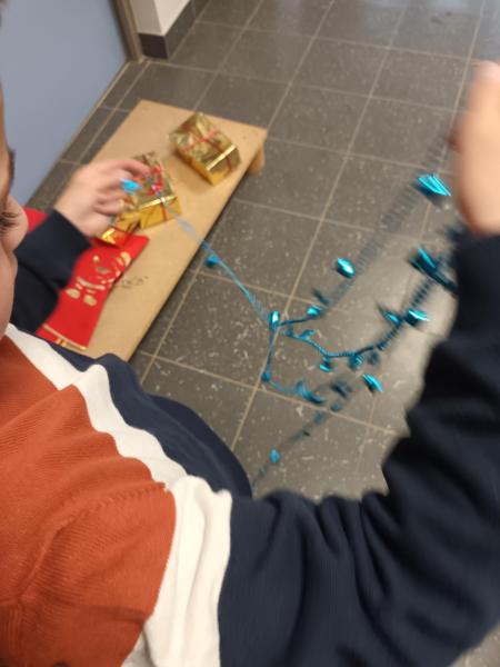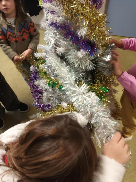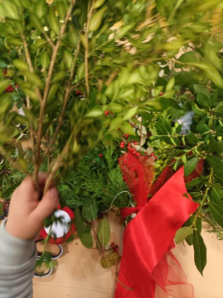 Les enfants du centre de loisirs ont décoré le centre puis ont confectionné des bouquets, à la demande du comité des fêtes, pour décorer les fontaines du village à l'occasion du Marché de Noël.