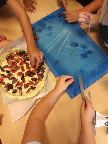 Ateliers cuisines, tarte aux figues et gâteau aux yaourts et pépites de chocolat et jardinage, nettoyage des fraisiers et des plantes aromatiques