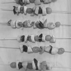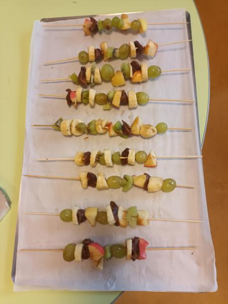 Les enfants ont confectionné des brochettes de fruits qu'ils ont dégusté pour le goûter.