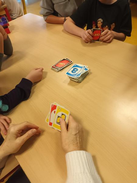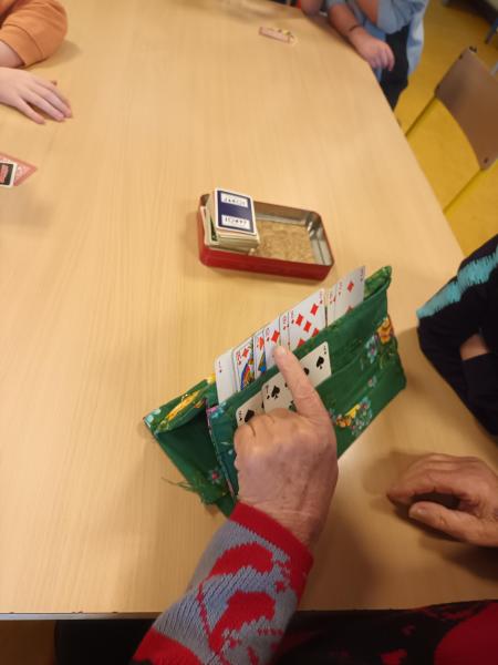 Le matin, nous avons continué notre projet sur l'impact du plastique sur l'environnement à travers un petit jeu de recherche et de questionnement sur la durée de dégradation des déchets puis l'après-midi, Anne-Marie, Denise et Jeanine (membres du foyer culturel) sont venues passer un moment avec les enfants en leur proposant des jeux de cartes.