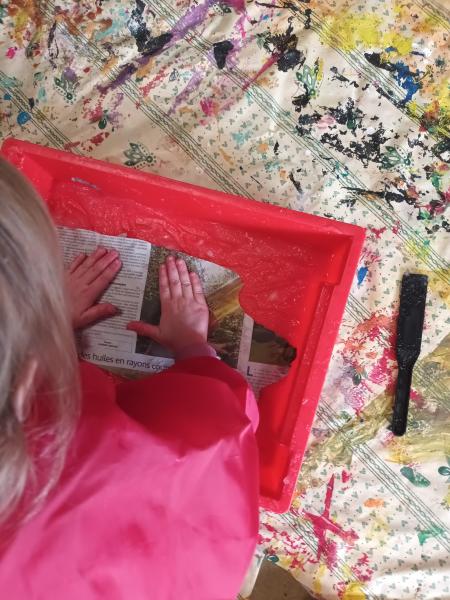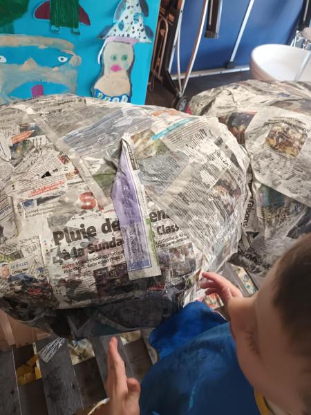 Nous avons continué la frise sur le temps de dégradation des déchets puis l'après-midi les enfants ont continué le caramantran